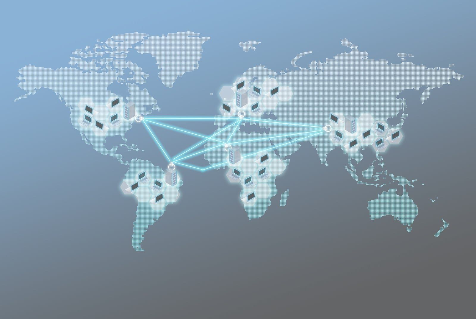 The global network business concept can be use to symbolise virtual team sites remote working and related global business concepts